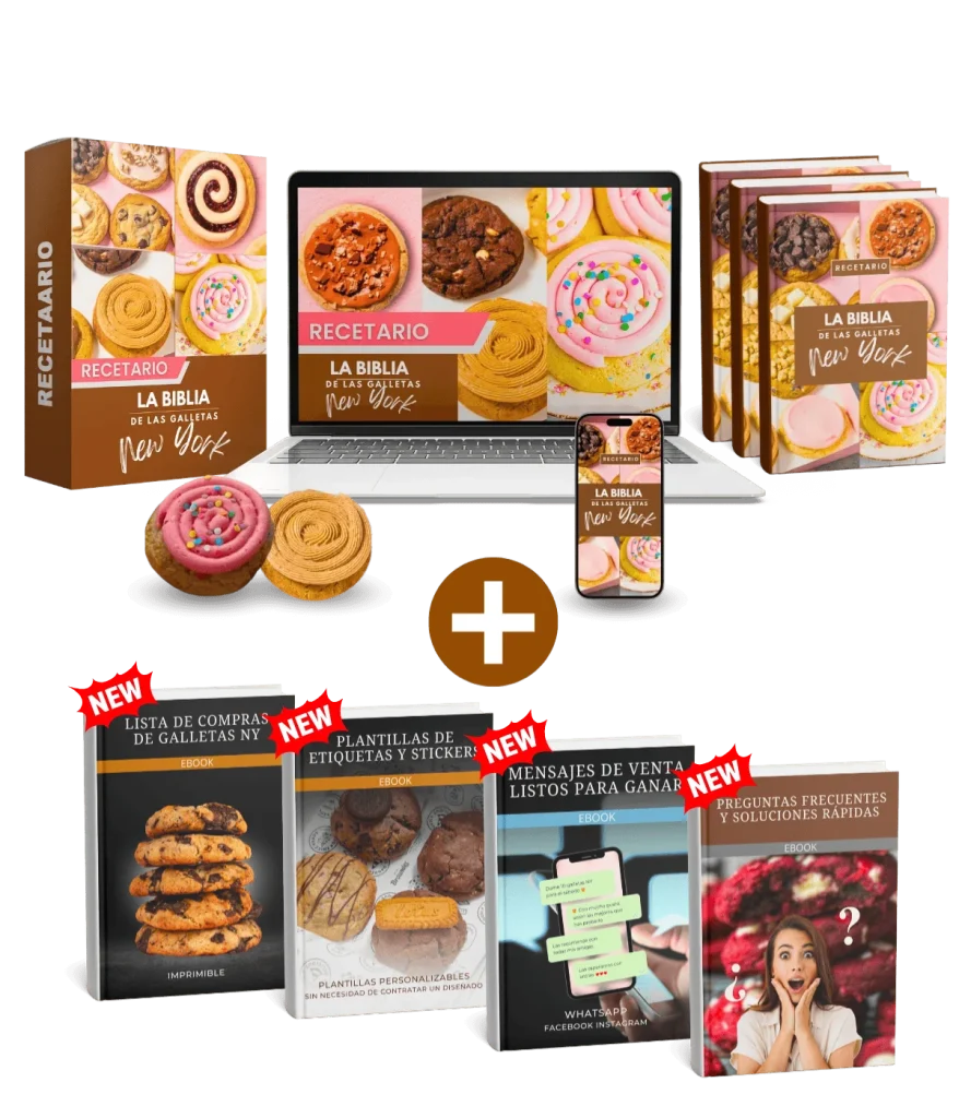 🍪 +70 Recetas gourmet Galletas NY exclusivas: Desde las clásicas hasta combinaciones únicas, cada receta es una explosión de sabores irresistibles que enamorarán a tus clientes y a familiares.